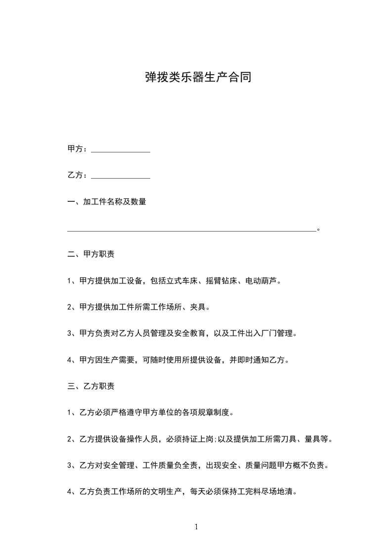 弹拨类乐器运输合同