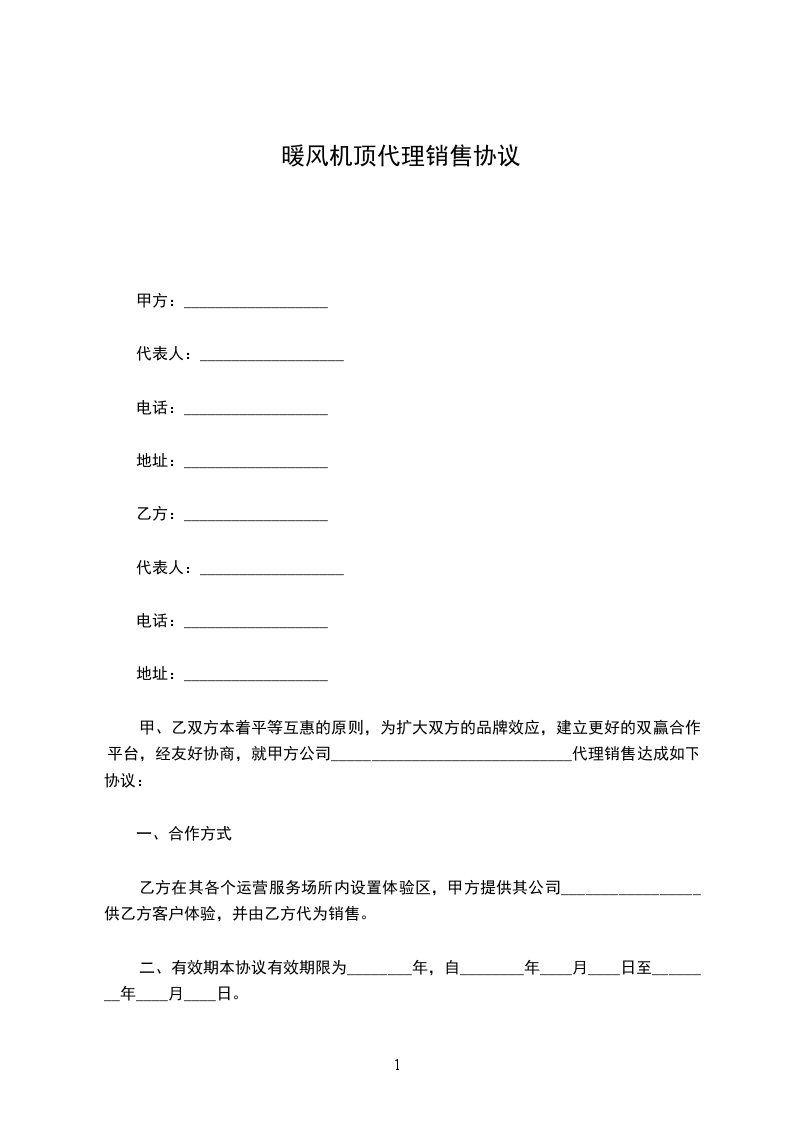 为规范甲、乙双方合作得运作流程,进一步明确甲、乙双方合作当事人得权利及义务,甲、乙双方就甲方委托乙方代为销售________________________事宜,本着平等自愿、诚实守信、合法共赢、友好协商得原则,达成如下协议:
