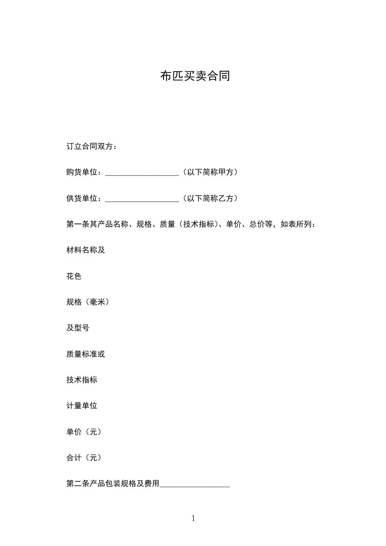 第一条其产品名称、规格、质量(技术指标)、单价、总价等,如表所列: