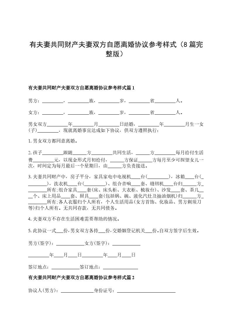 无债权夫妻双方自愿离婚协议参考格式篇8