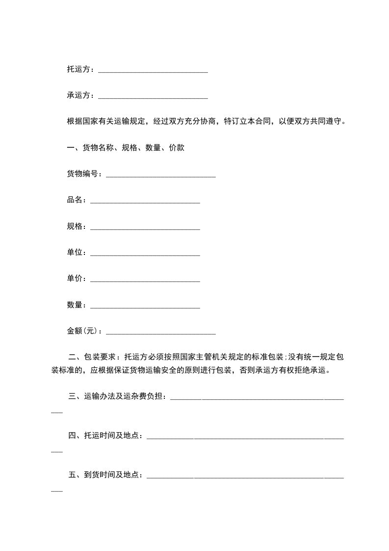 根据国家有关运输规定,经过双方充分协商,特订立本合同,以便双方共同遵守。