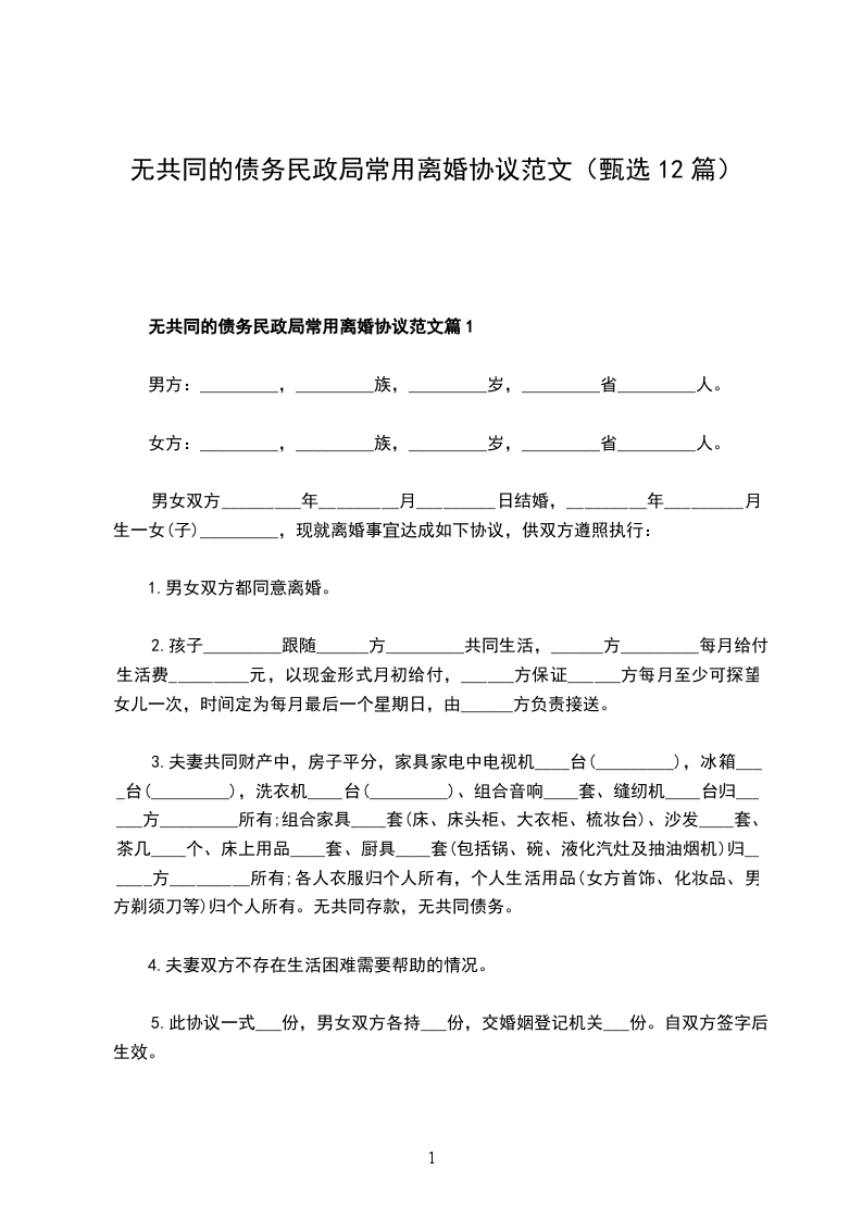 (1)男女双方确认在婚姻关系存续期间无共同债务。