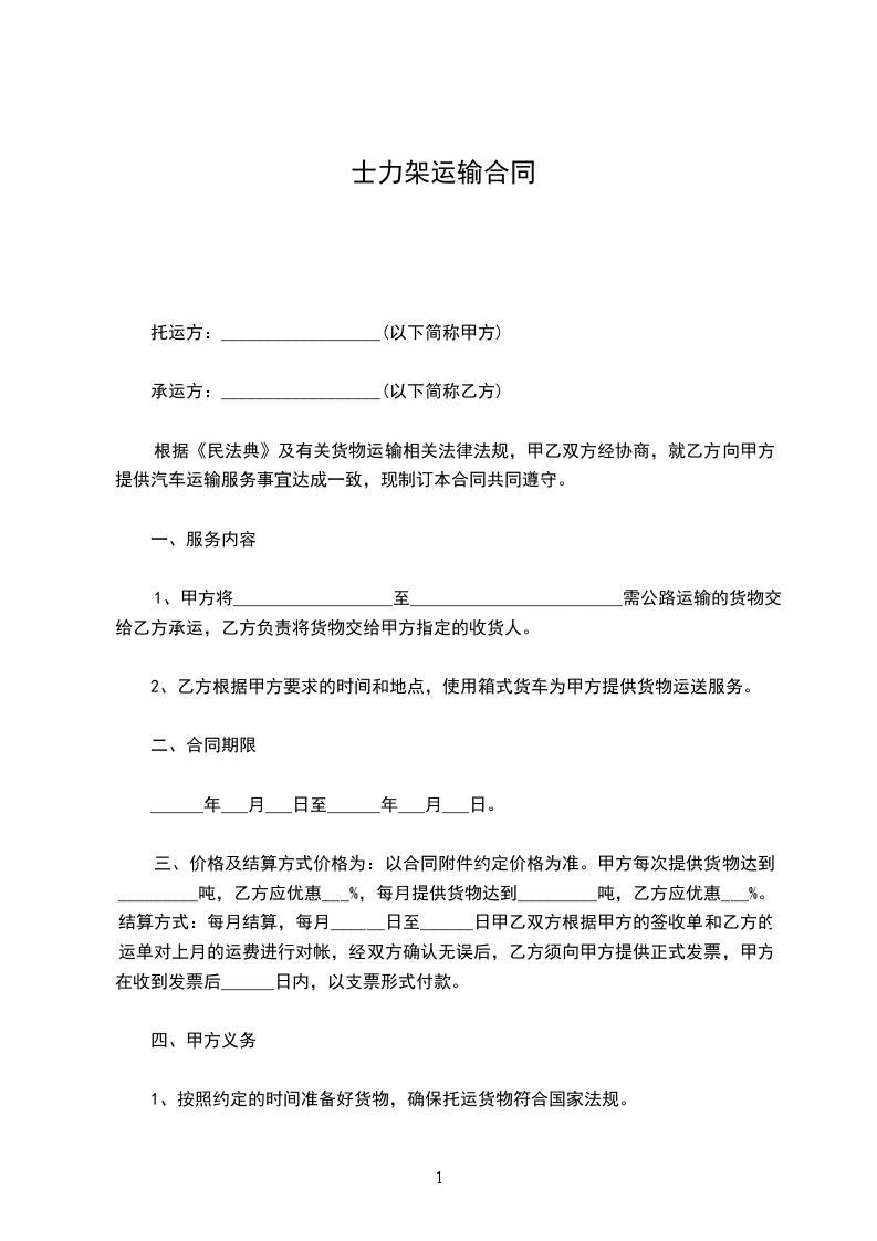 士力架运输合同