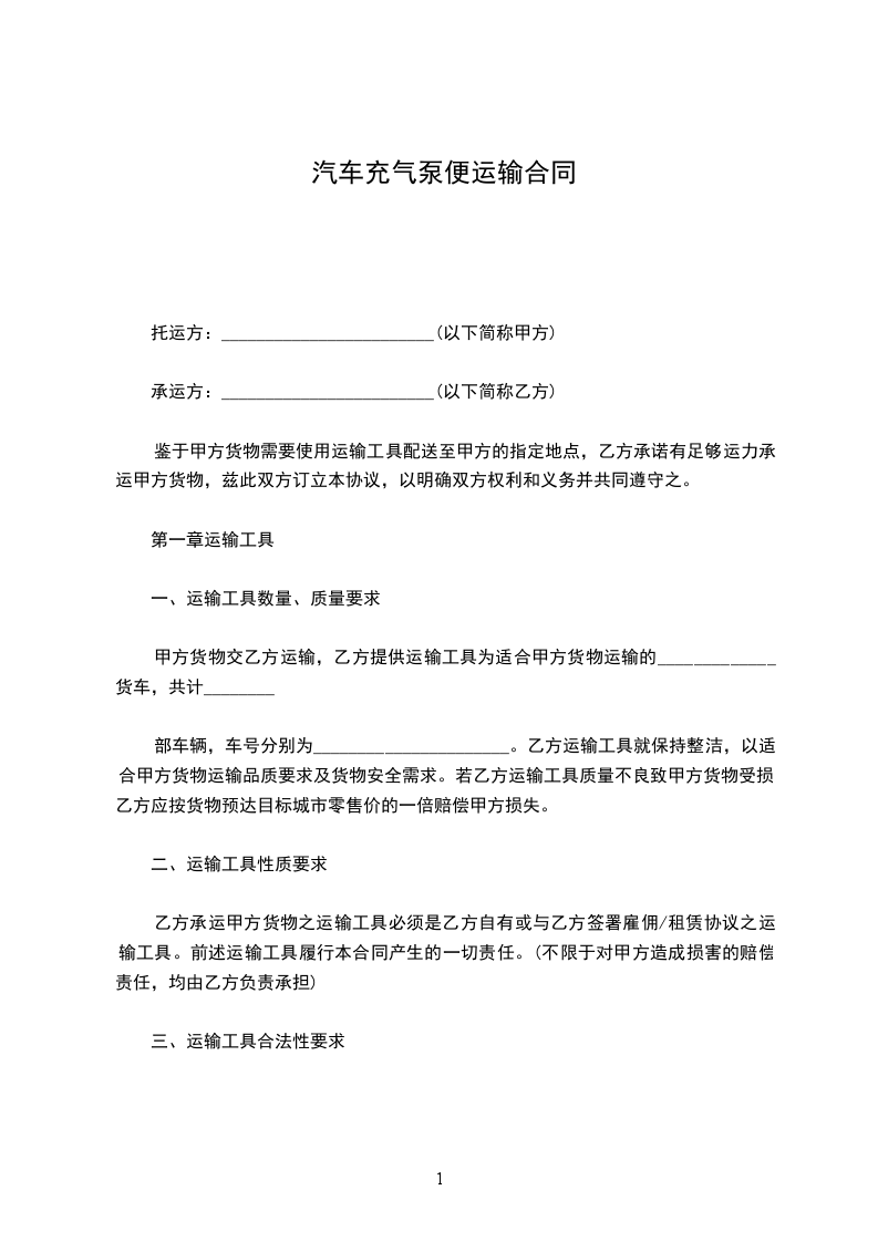 甲方货物交乙方运输,乙方提供运输工具为适合甲方货物运输的_____________货车,共计________