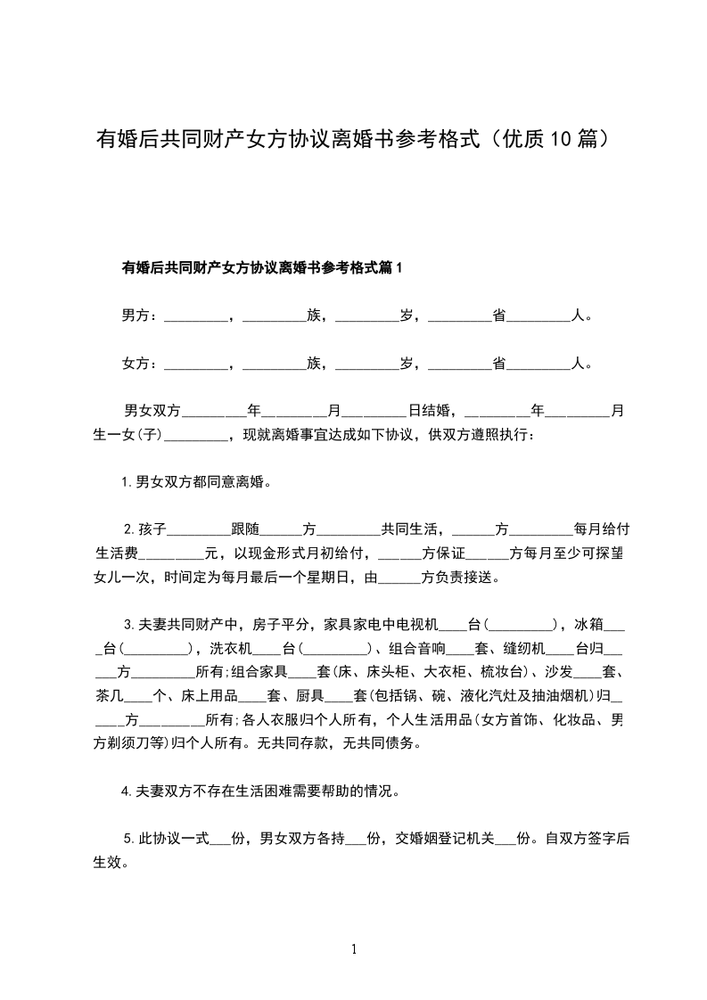 有婚后共同财产女方协议离婚范本参考样本篇10