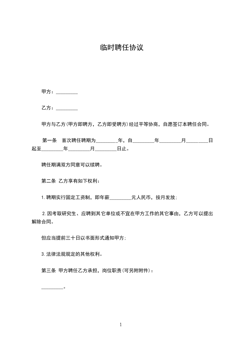 聘用临时工作为一种新的改革措施,它有利 降低行政成本、改善.风气、提高政府公信力、创新政治文化。那么签订需要留意什么呢?以下是在.我为大家整理的.,感谢您的观赏。一 甲方:_ 乙方:_ 甲方与乙方(甲方即聘方,乙方即受聘方)经过公平协商,自愿签订本聘任合同。