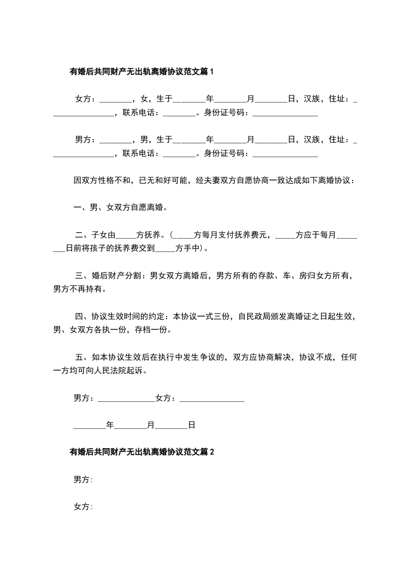 有婚后共同财产无出轨离婚协议参考格式篇2