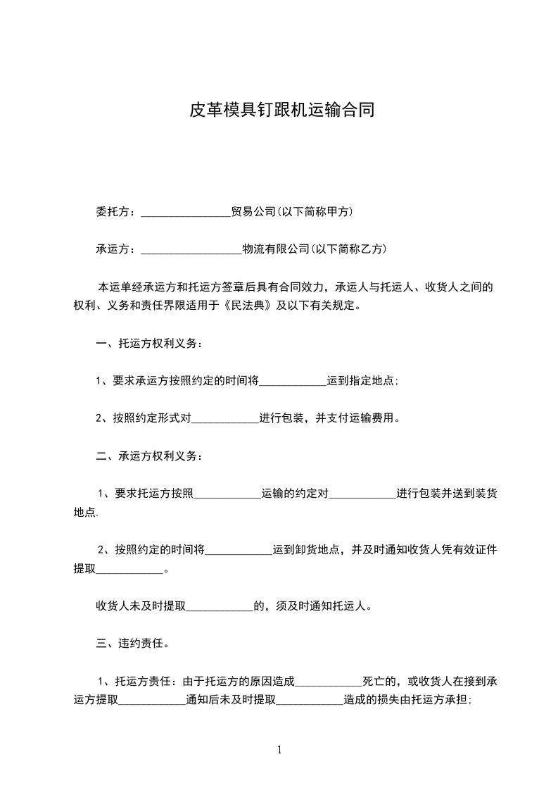 1、要求承运方按照约定的时间将____________运到指定地点;