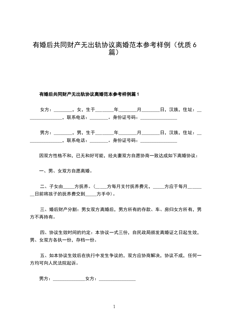 有婚后共同财产无出轨协议离婚范本参考样例篇6