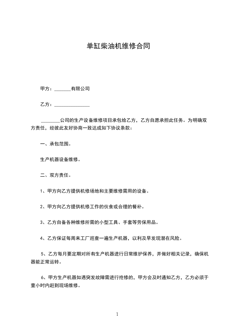 单缸柴油机运输合同