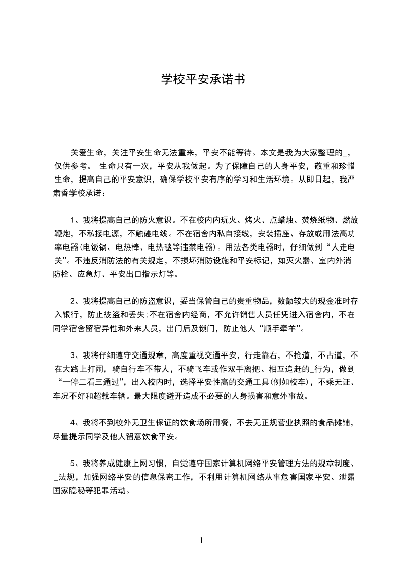 平安就是生命,忽视了平安,就像失去了生命。下面是_我为大家搜集的,供大家参考。 一 为保障公司平安管理制度和措施得到仔细贯彻和落实,确保公司平安管理工作目标的实现,根据#集团有限公司平安承诺书的要求,坚持平安第一,预防为主、综合治理的方针,坚持以人为本和谁主管、谁负责的原则,各部门负责人与公司总经理签订此承诺书,并严肃承诺履行以下平安职责: