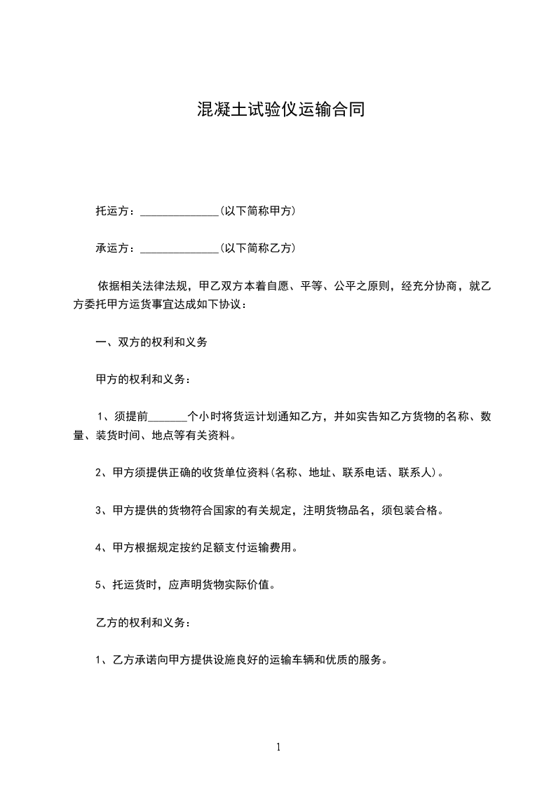 依据相关法律法规,甲乙双方本着自愿、平等、公平之原则,经充分协商,就乙方委托甲方运货事宜达成如下协议: