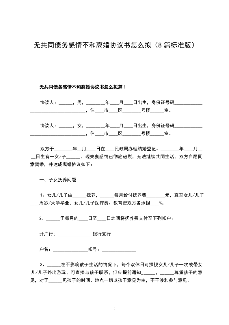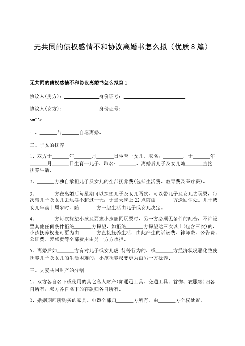 1、甲乙双方确认在婚姻关系存续期间无共同债务;