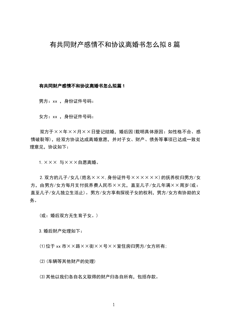 1、存款:双方共同存款____________万平分,双方各自名下的存款保持不变,归各自所有;