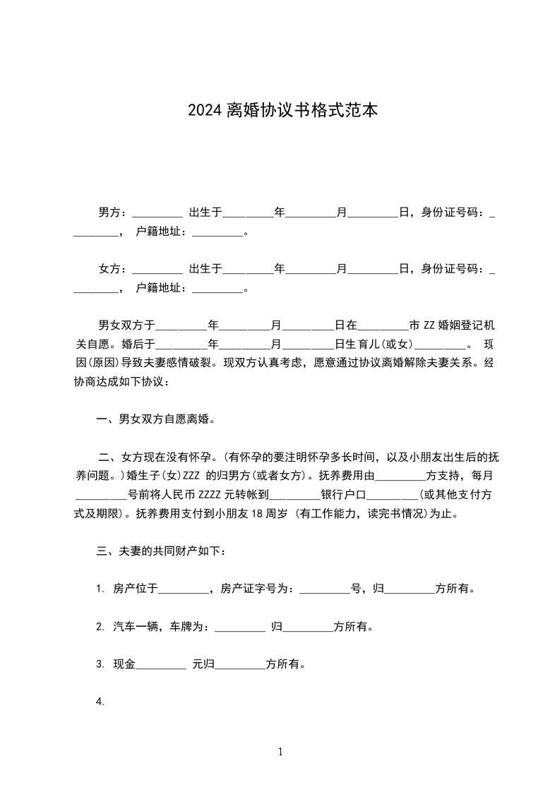 二、女方现在没有怀孕。(有怀孕的要注明怀孕多长时间,以及小朋友出生后的抚养问题。)婚生子(女)ZZZ 的归男方(或者女方)。抚养费用由_________方支持,每月_________号前将人民币ZZZZ元转帐到_________银行户口_________(或其他支付方式及期限)。抚养费用支付到小朋友18周岁 (有工作能力,读完书情况)为止。