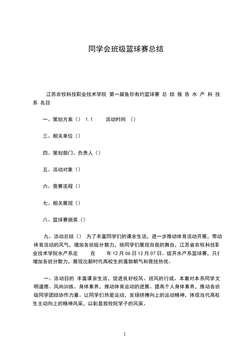 江苏农牧科技职业技术学院 第一届鱼你有约篮球赛 总 结 报 告 水 产 科 技 系 名目