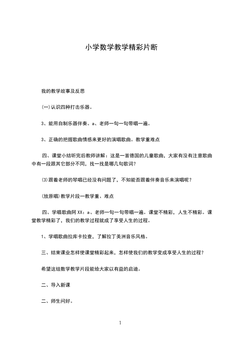 四、学唱歌曲阿XX:a、老师一句一句带唱一遍。课堂不精彩,人生不精彩。课堂教学精彩了,我们的教学过程就成了享受人生的过程。