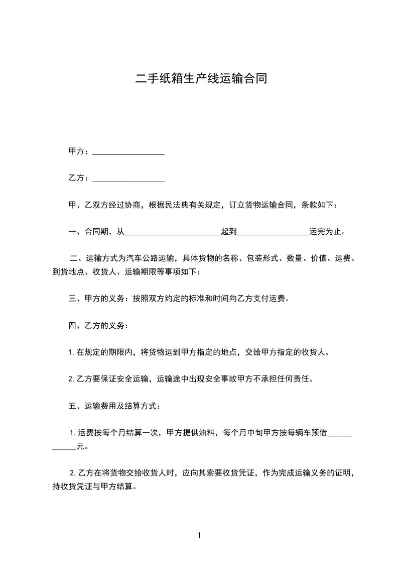 生产线纸盒运输合同