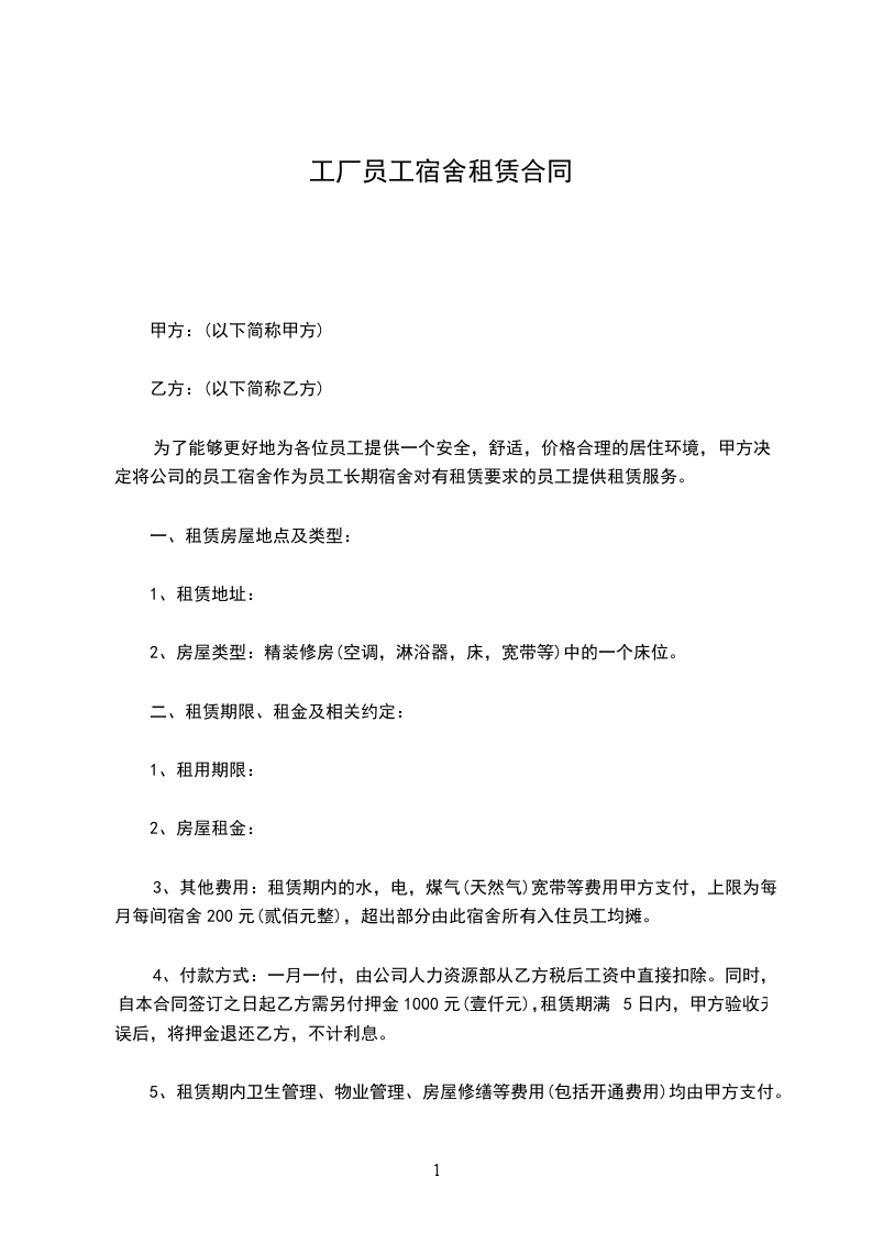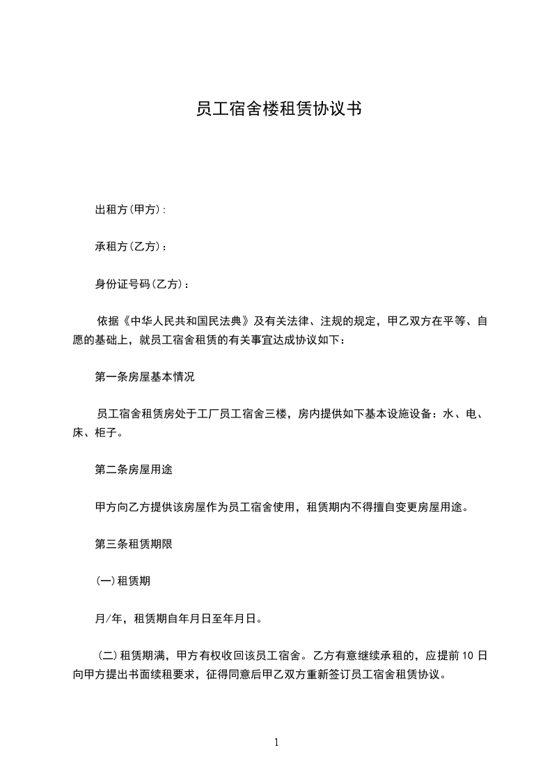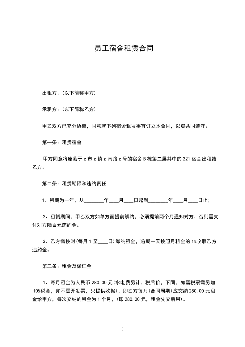 第一条:租赁宿舍