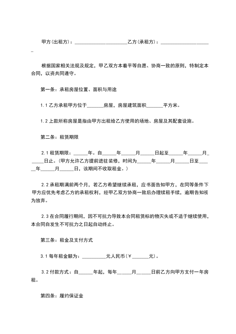 1、租期为一年,从________年____月____日起到________年____月____日止;
