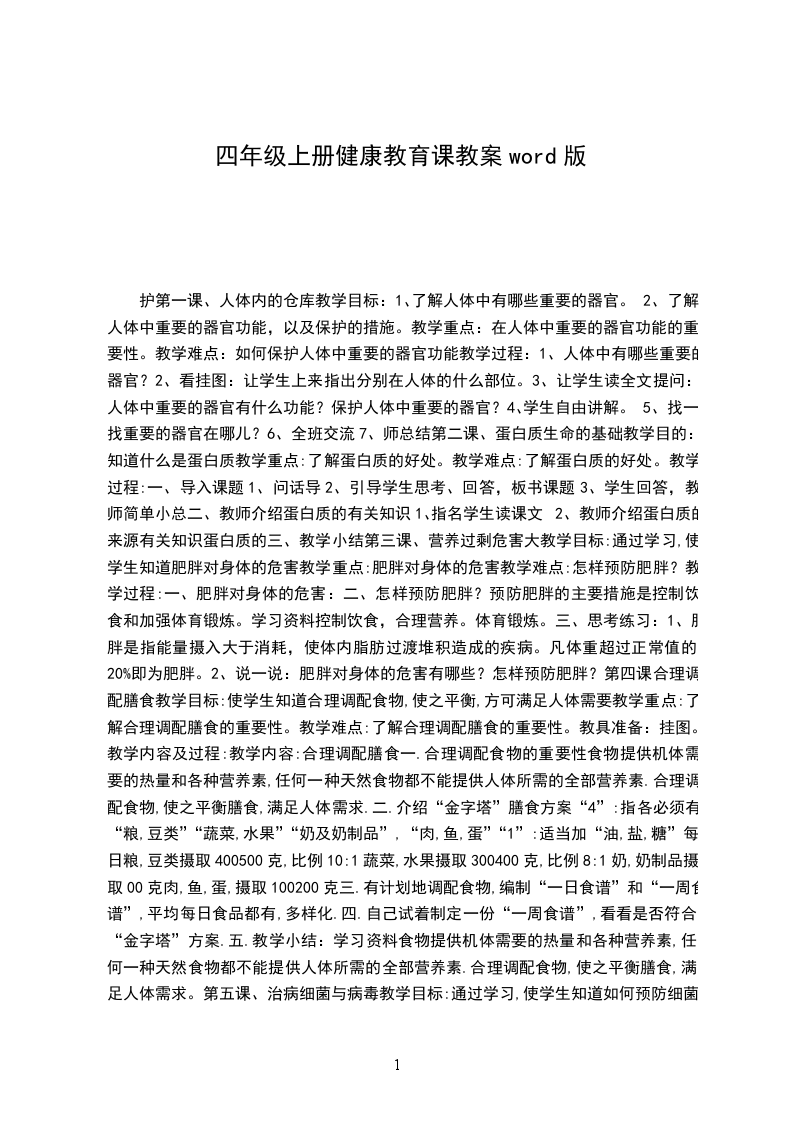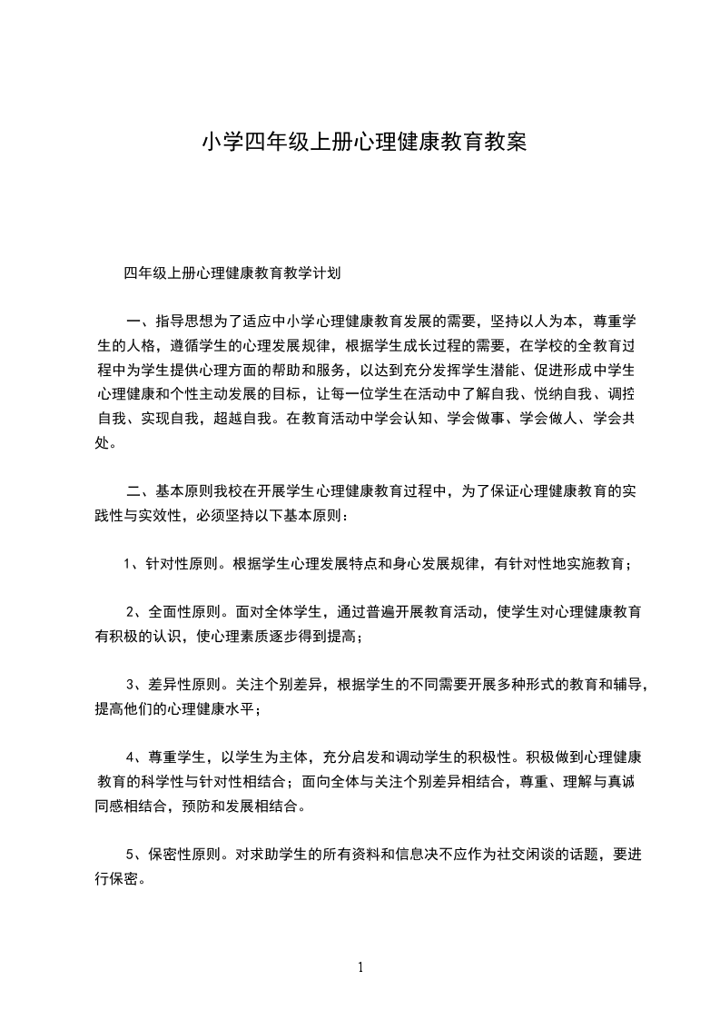 四年级上册心理健康教育教学计划
