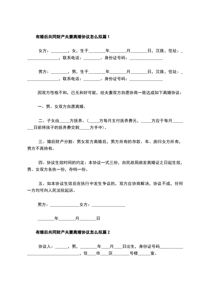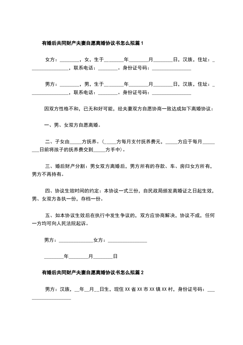 有婚后共同财产夫妻自愿离婚协议书怎么拟篇2