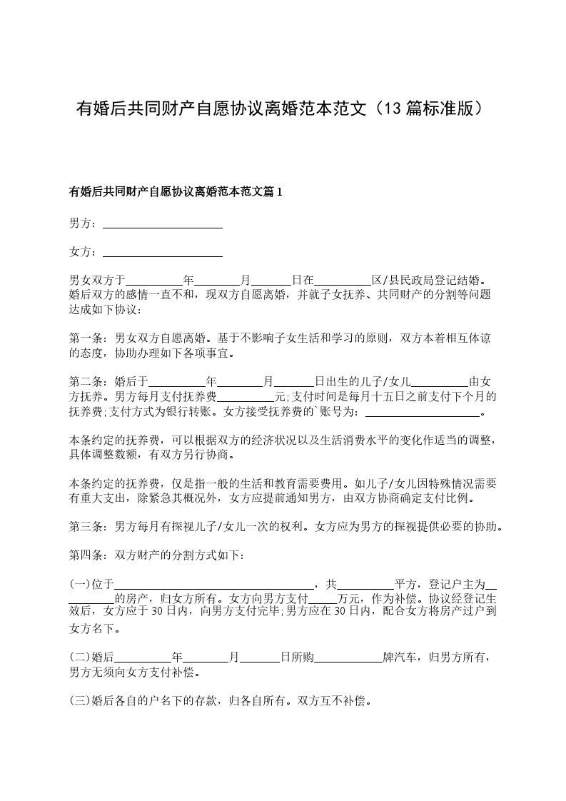 有婚后共同财产夫妻自愿离婚协议书怎么拟篇13