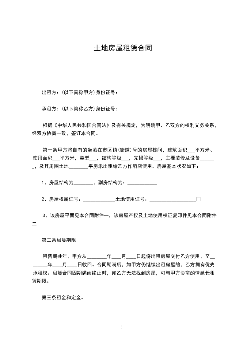 第一条甲方将自有的坐落在市区镇(街道)号的房屋栋间,建筑面积___平方米、使用面积___平方米,类型___,结构等级___,完损等级___,主要装修及设备_______,及其周围土地________平房米出租给乙方作酒店使用。房屋基本状况如下: