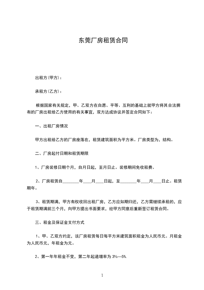 2、第一年年租金不变,第二年起递增率为3%—5%.