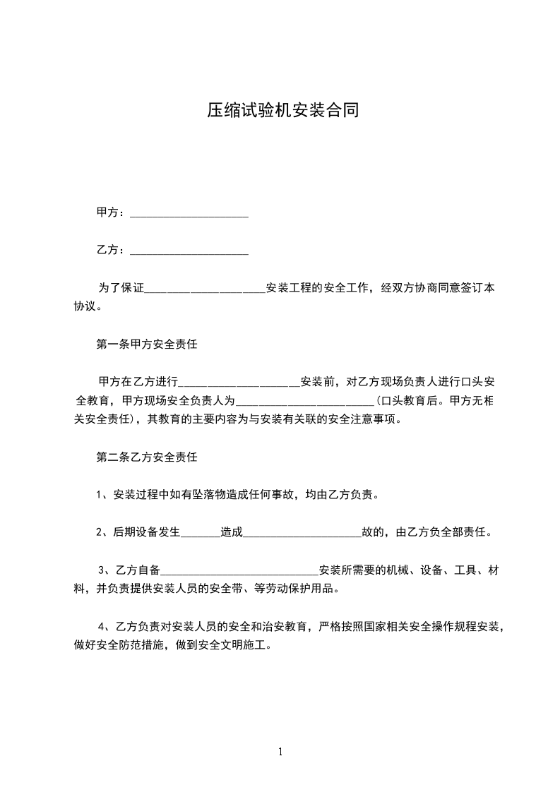 为了保证_____________________安装工程的安全工作,经双方协商同意签订本协议。