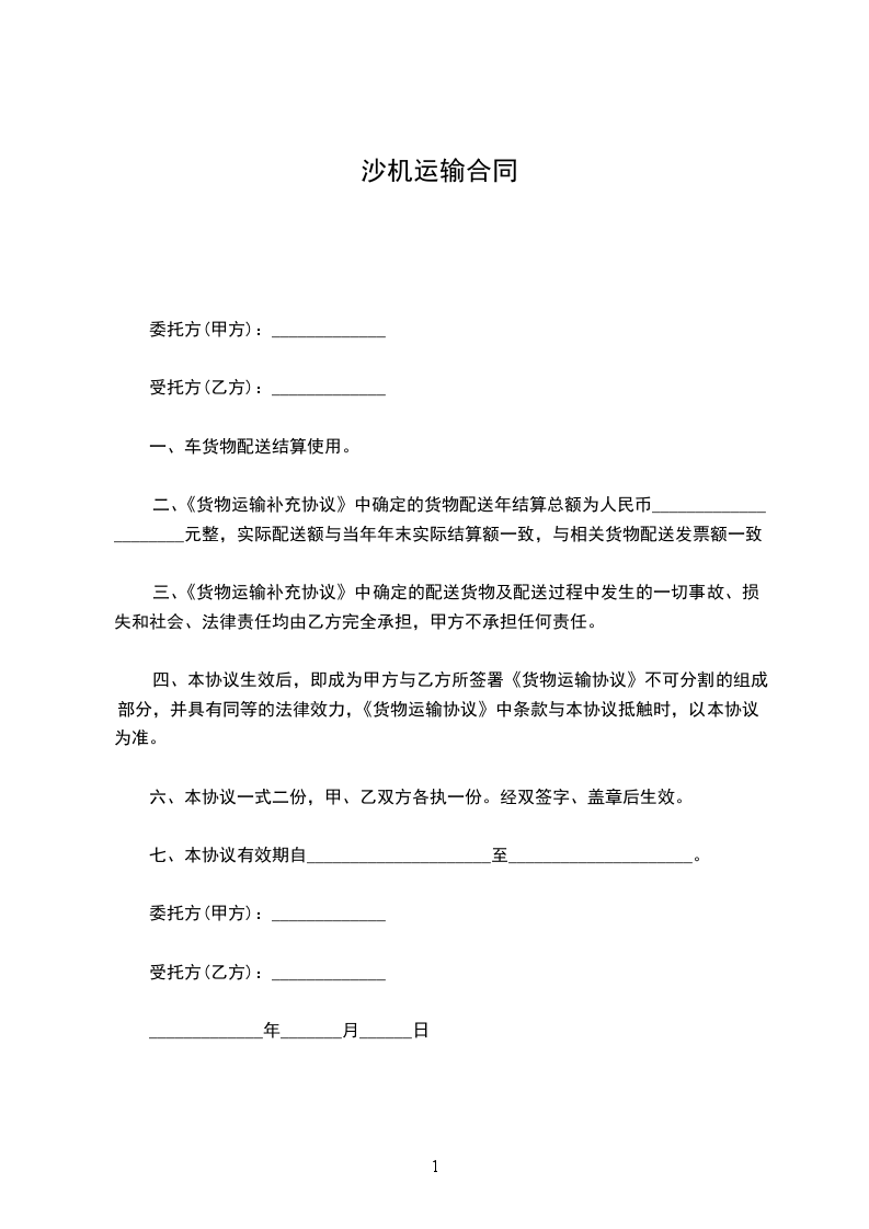 沙机运输合同