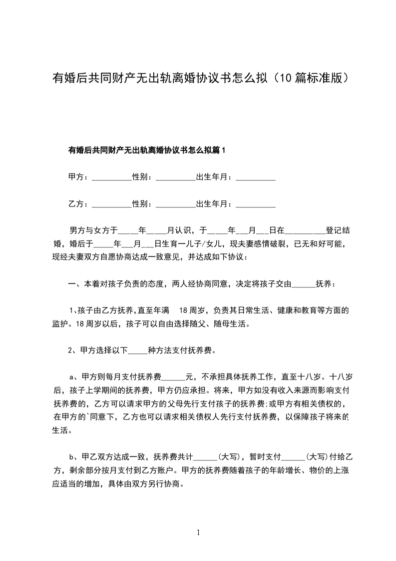 有婚后共同财产无出轨协议离婚范本怎么拟篇9