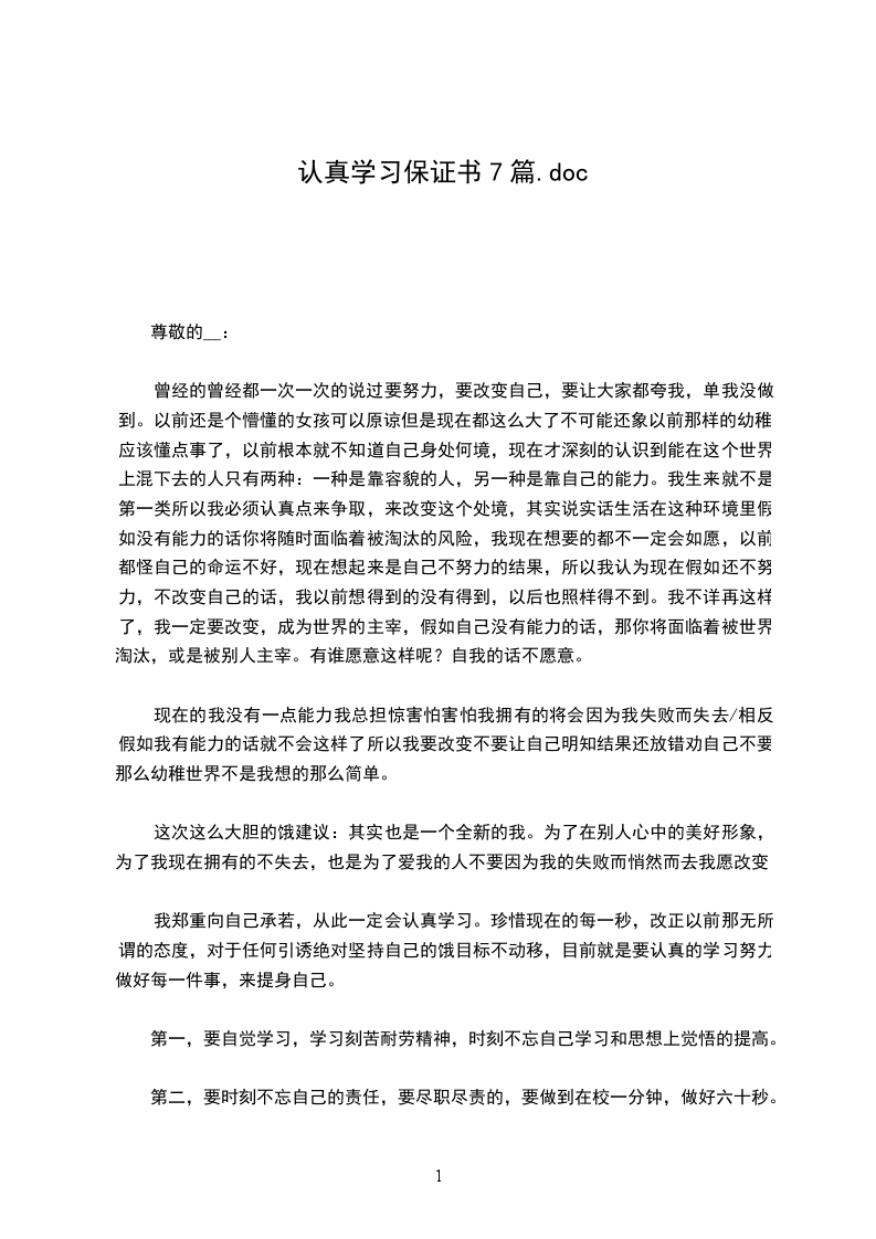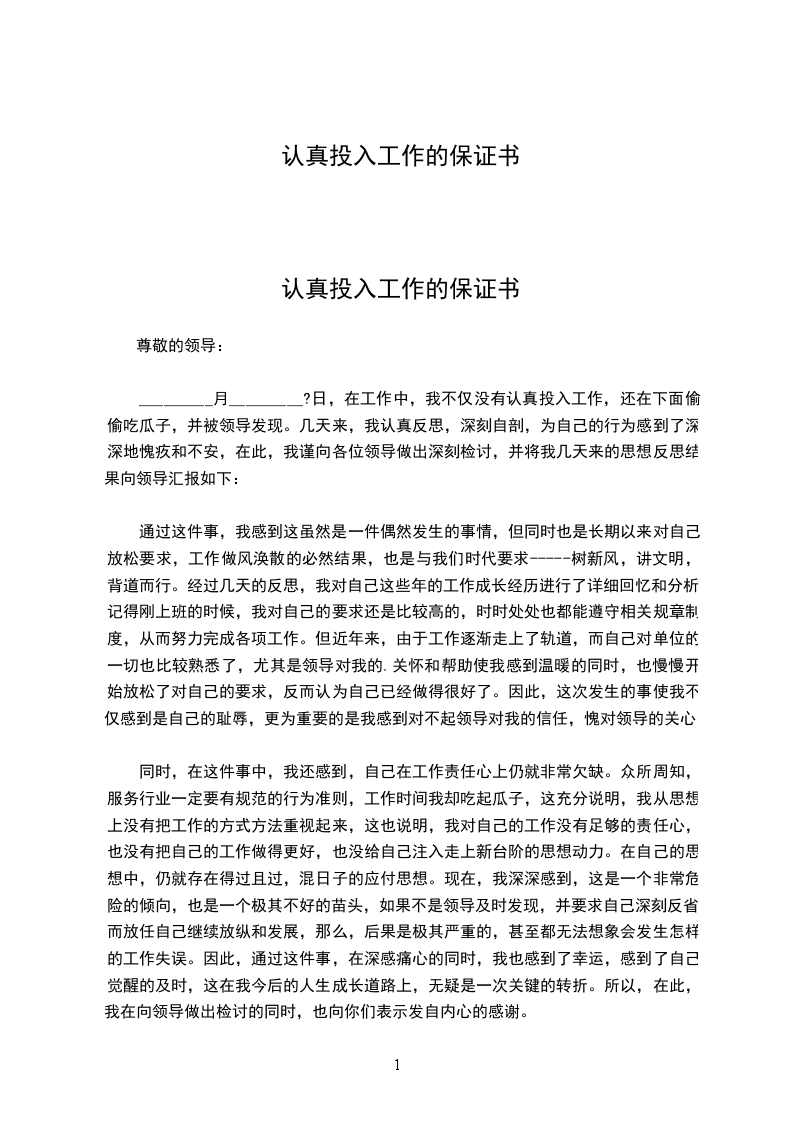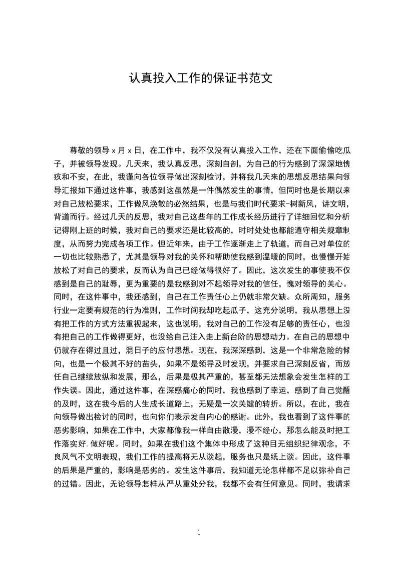 认真投入工作的保证书