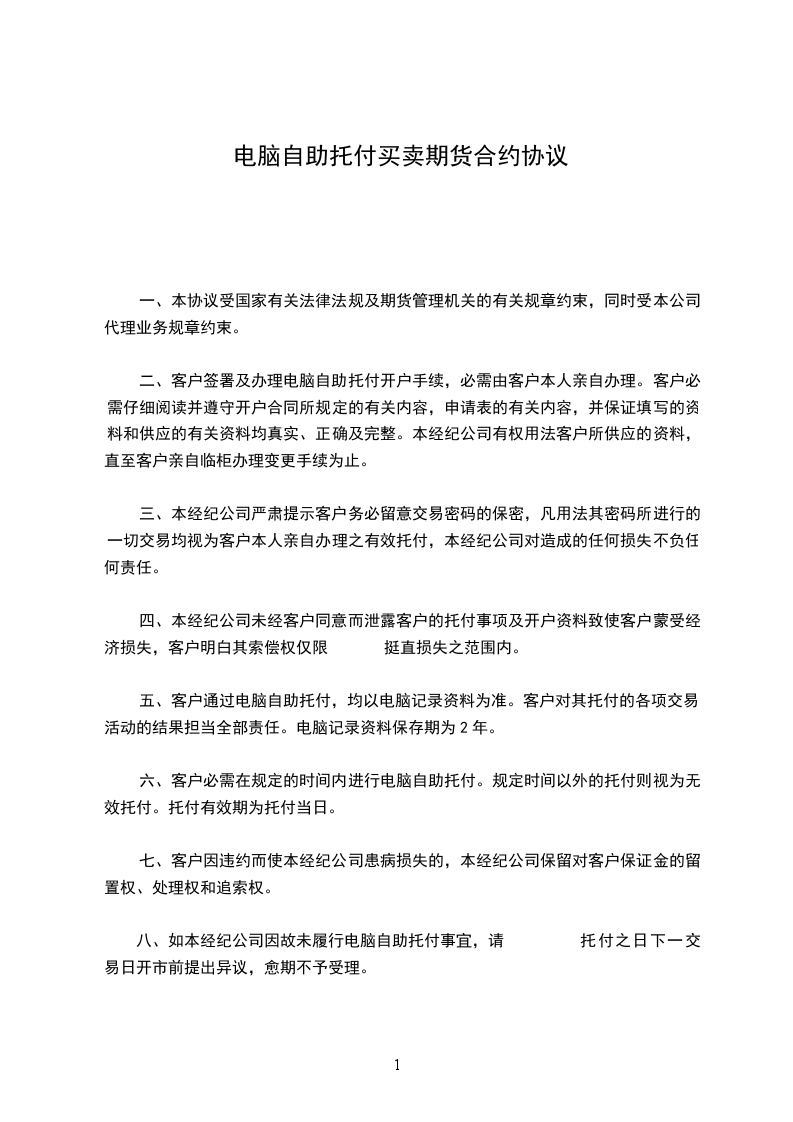一、本协议受国家有关法律法规及期货管理机关的有关规章约束,同时受本公司代理业务规章约束。