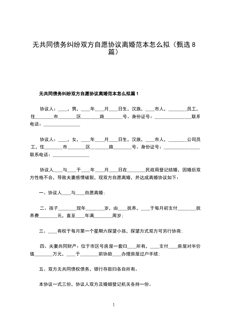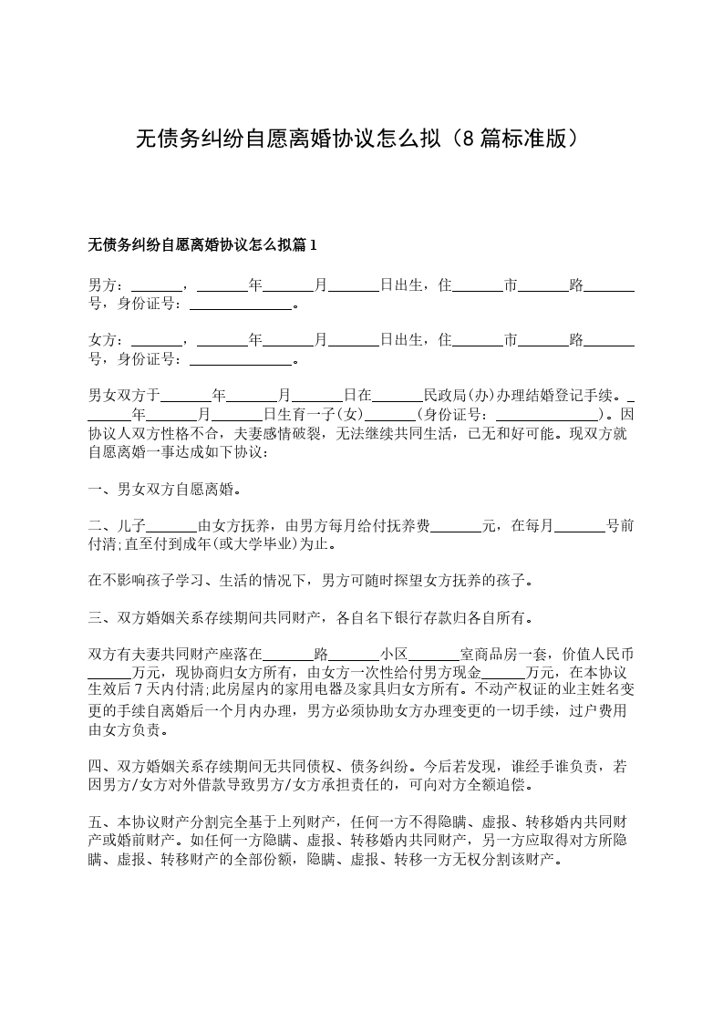 无债务纠纷夫妻双方自愿离婚协议怎么拟篇8