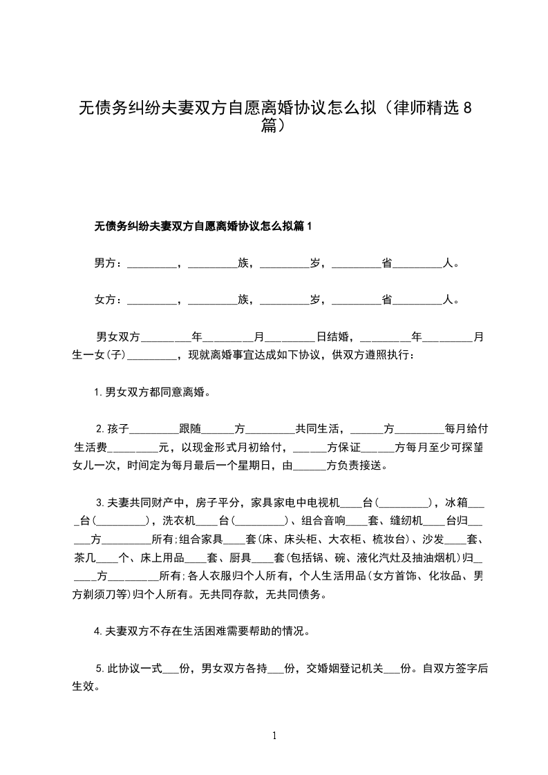无债务纠纷夫妻双方自愿离婚协议怎么拟篇1
