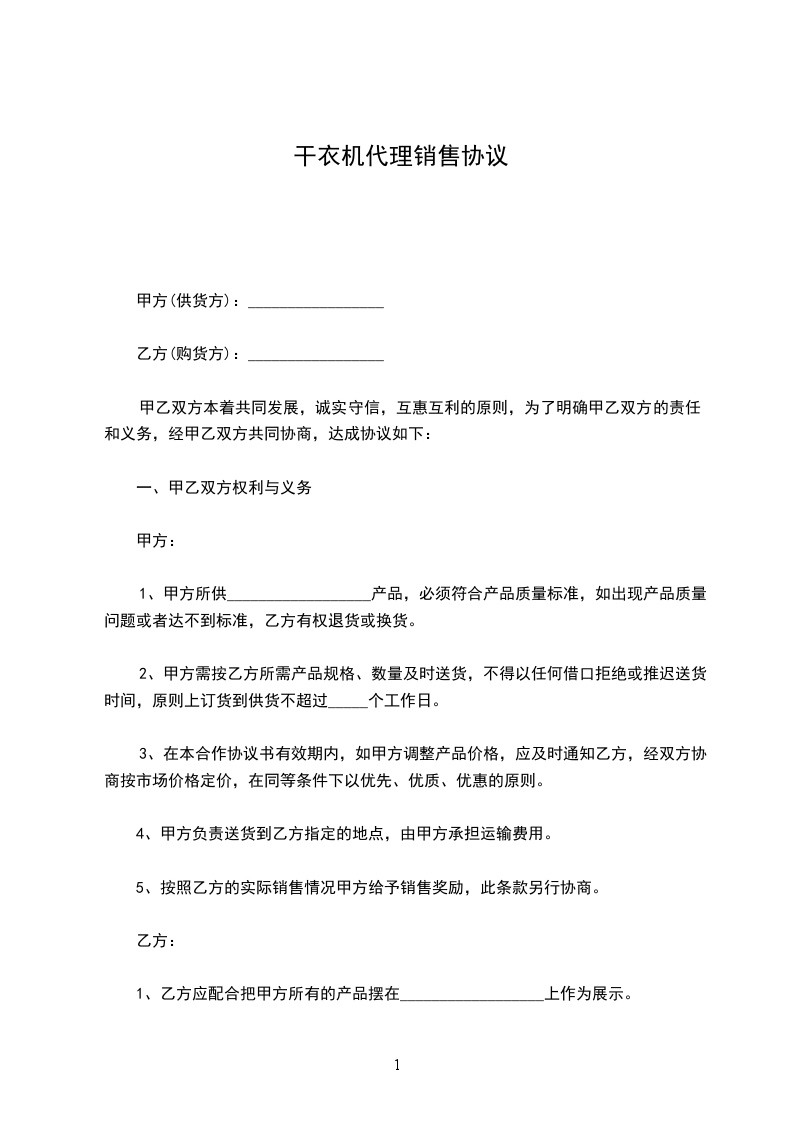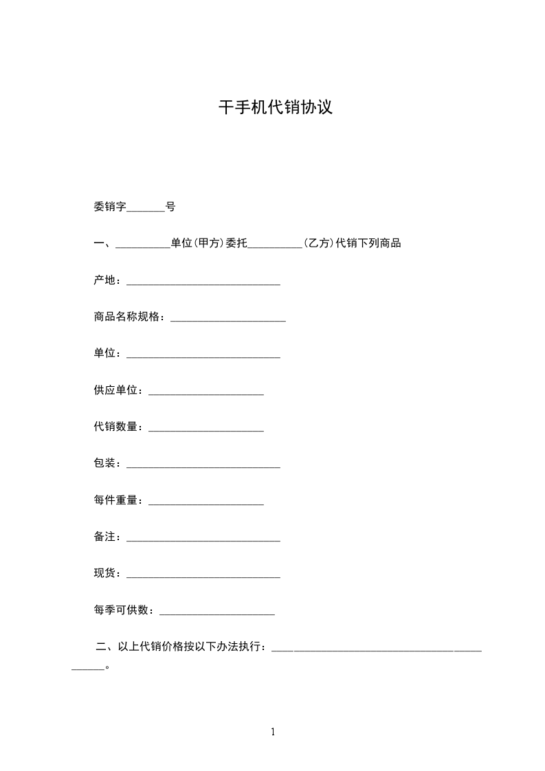 一、甲方授权乙方为产品在(地区)的经销权。
