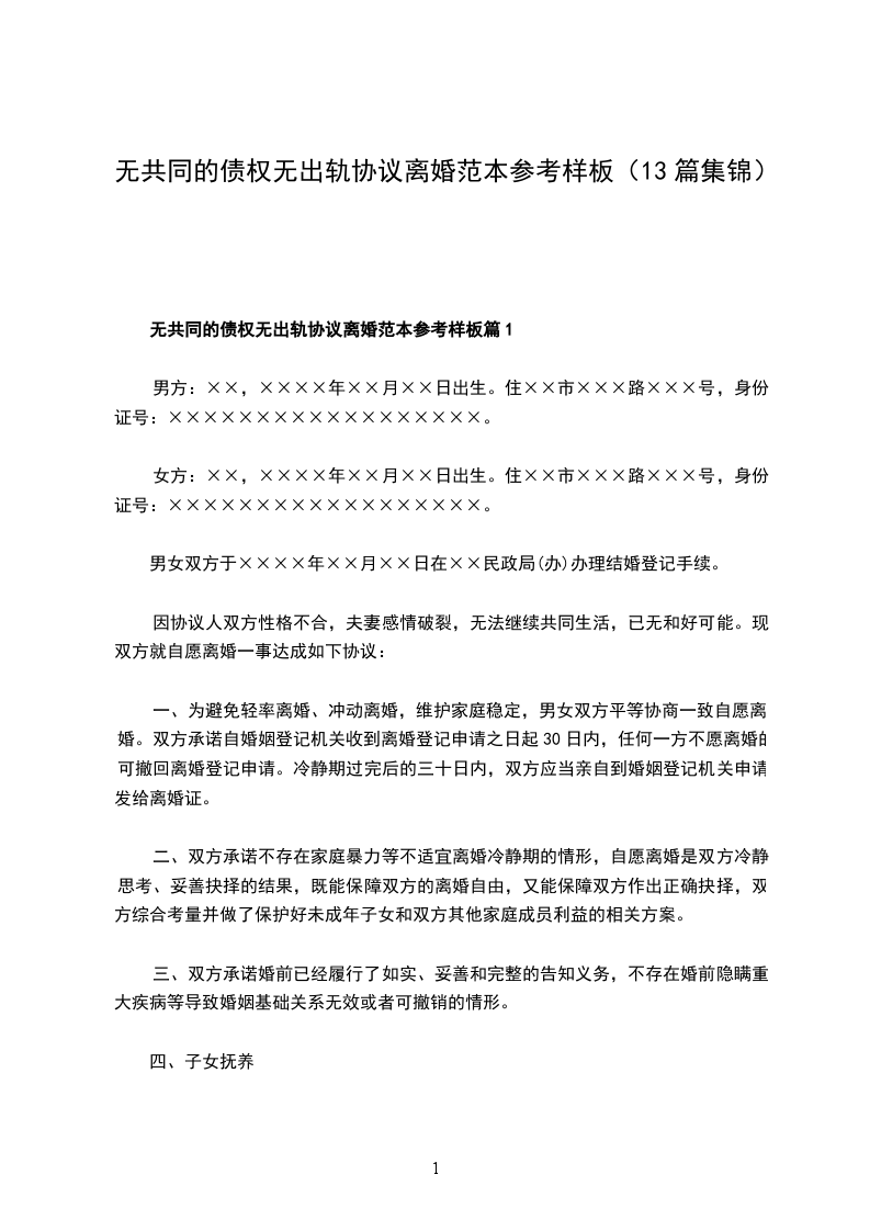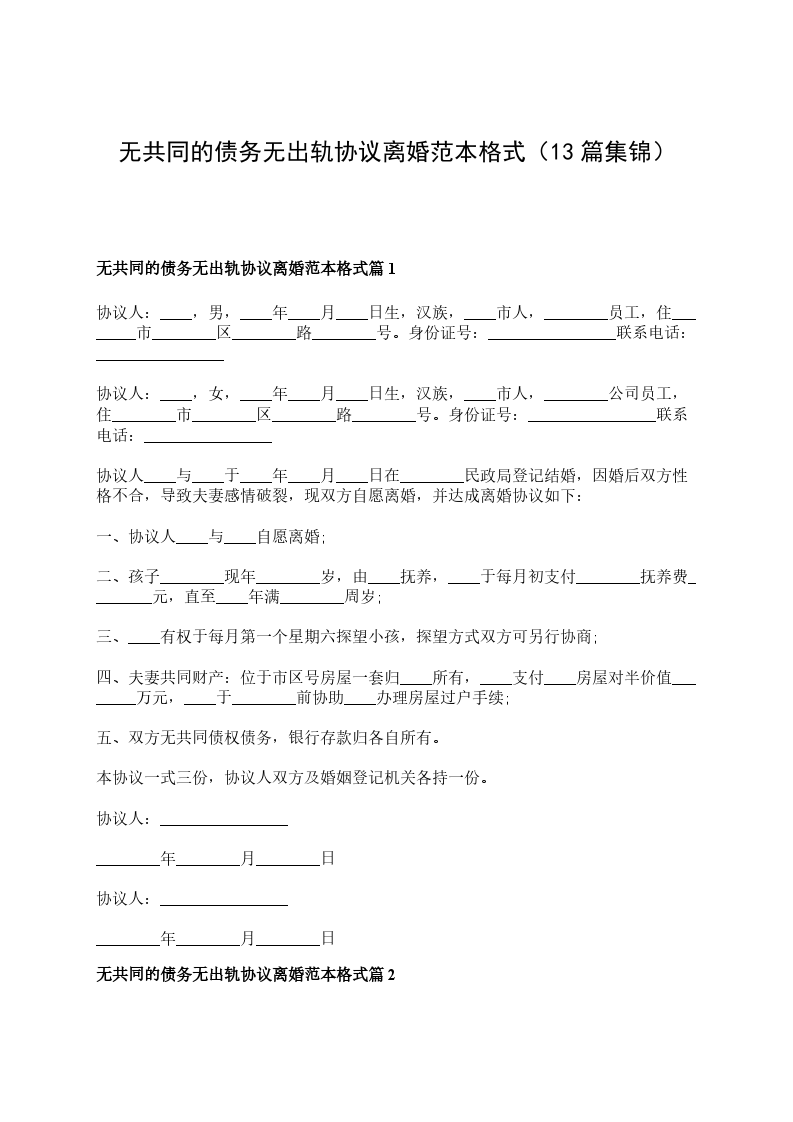 无共同债权债务无出轨协议离婚书参考格式篇13
