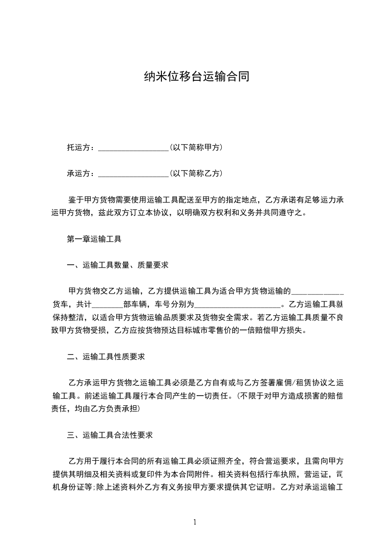 承运方:__________________(以下简称乙方)