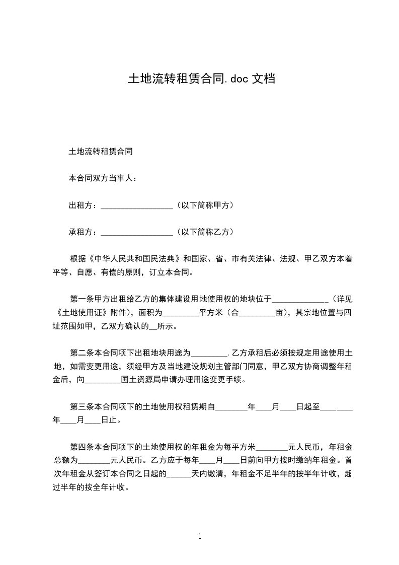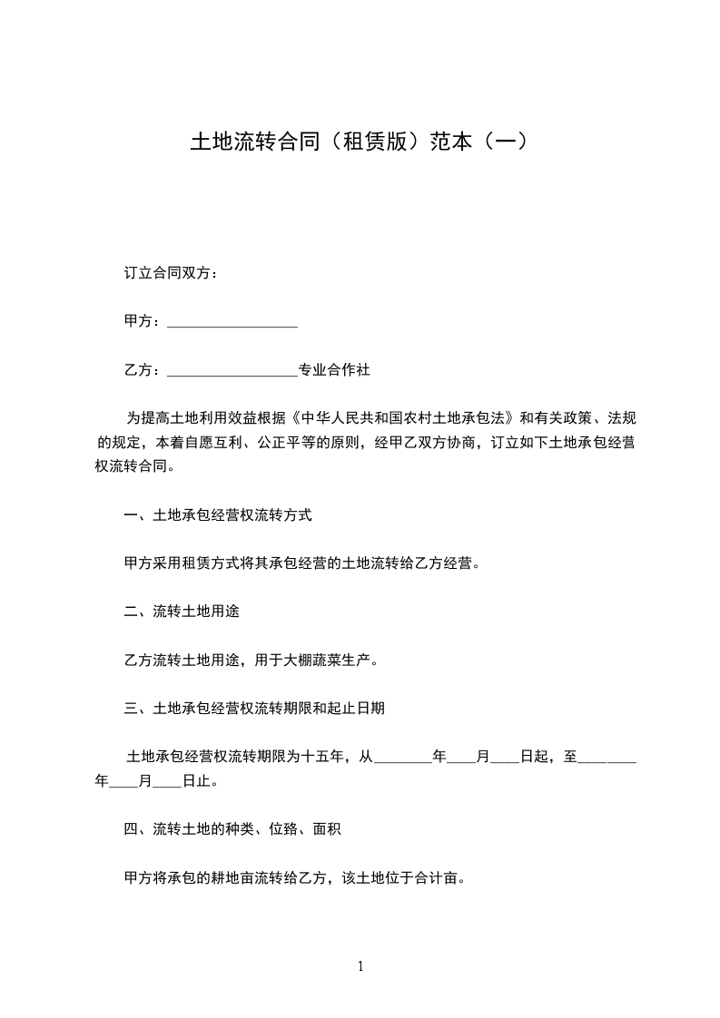 为提高土地利用效益根据《中华人民共和国农村土地承包法》和有关政策、法规的规定,本着自愿互利、公正平等的原则,经甲乙双方协商,订立如下土地承包经营权流转合同。