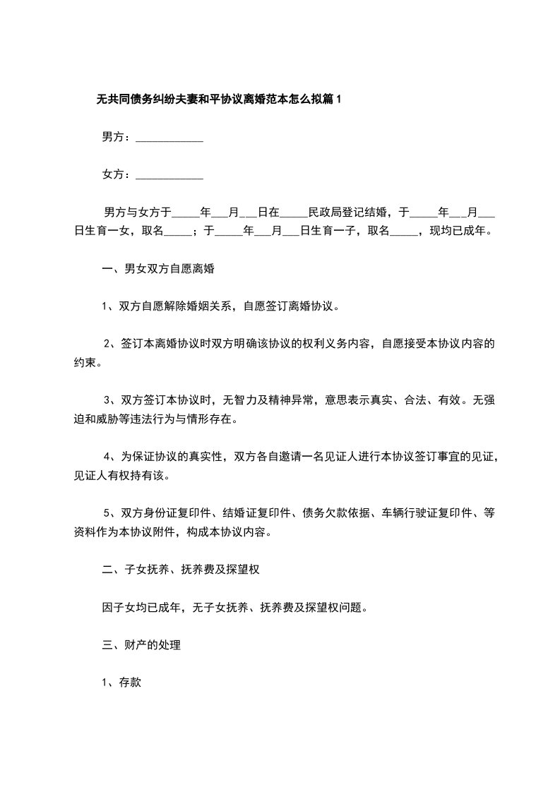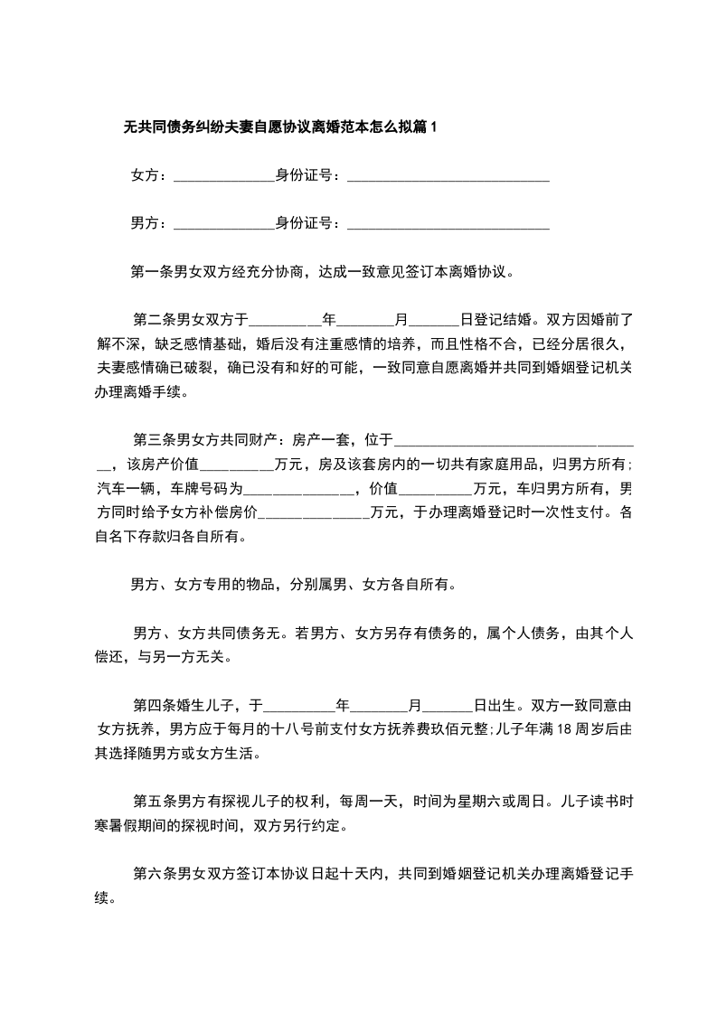 无共同债务纠纷夫妻协商协议离婚书怎么拟篇2