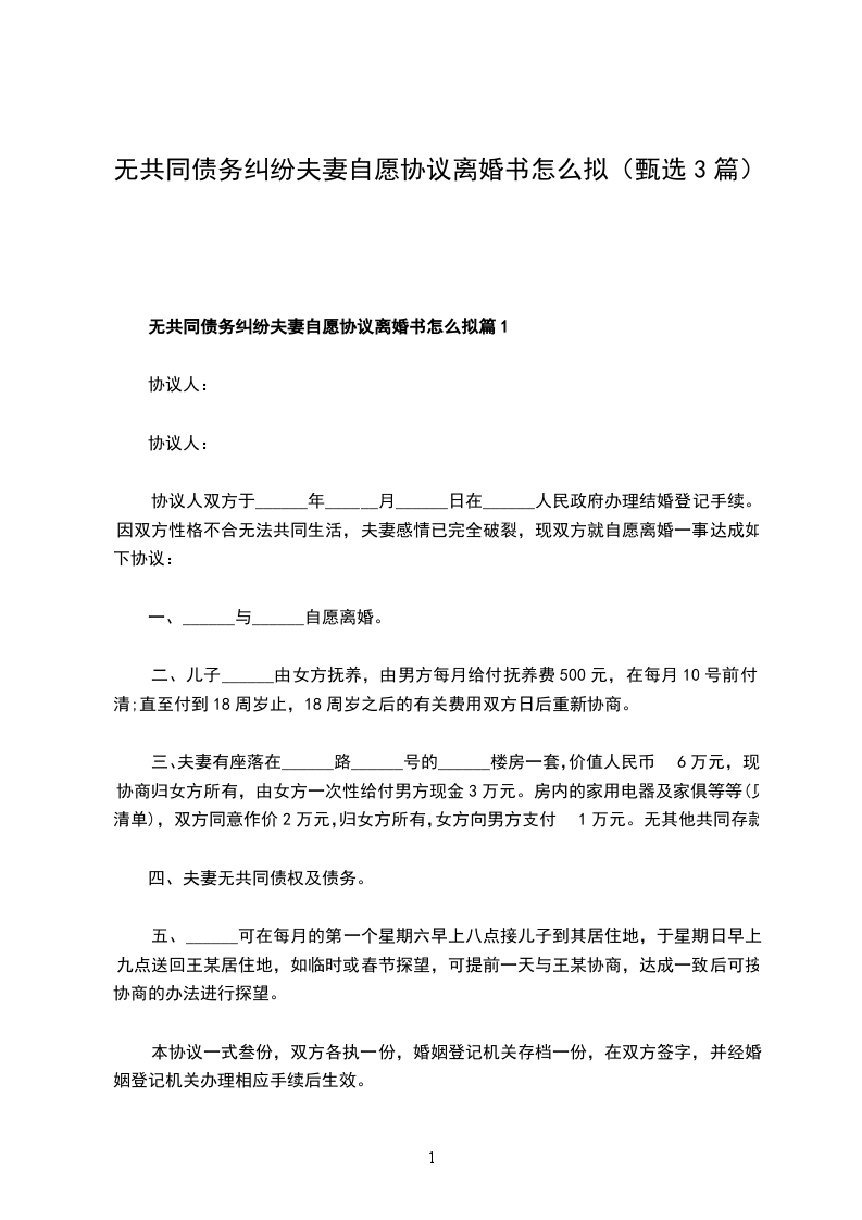 无共同债务纠纷夫妻协商协议离婚书怎么拟篇3
