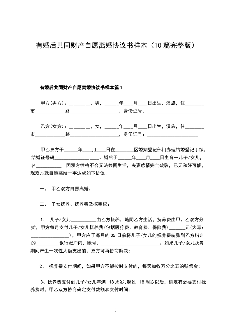 1、本协议一式三份,自婚姻登记机关颁发《离婚证》之日起生效,男、女双方各执一份,婚姻登记机关存档一份。