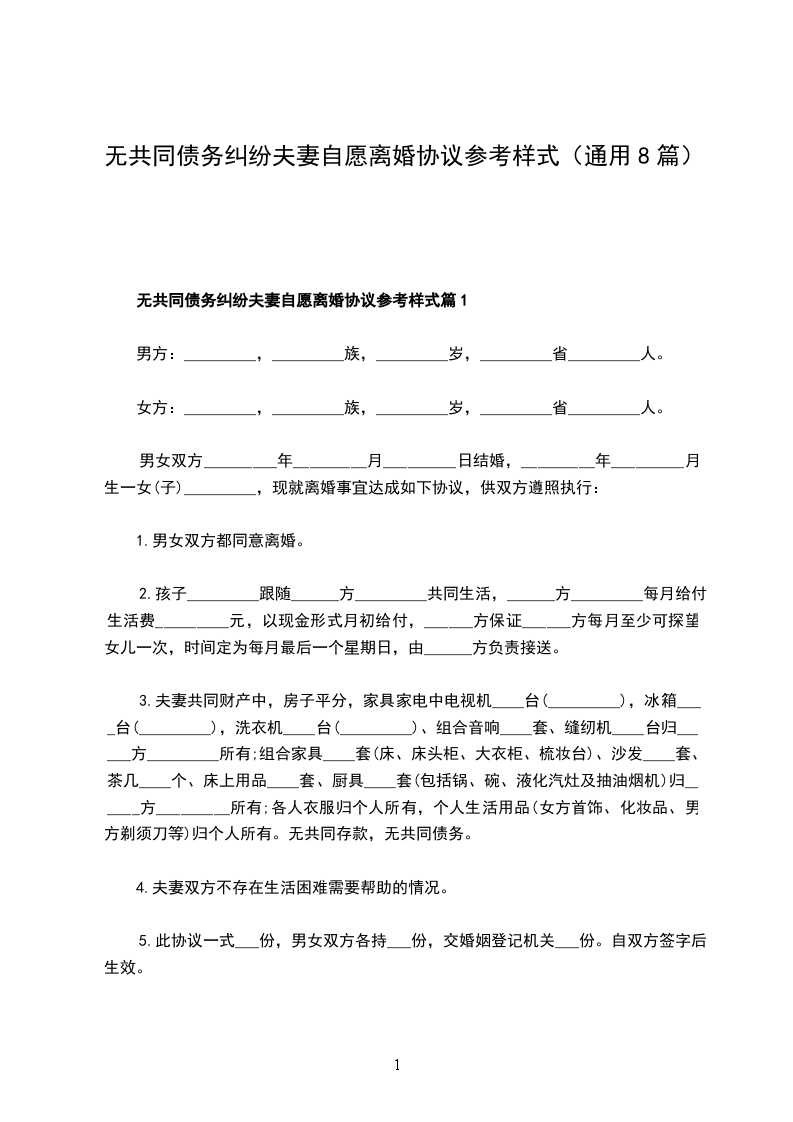无共同债务纠纷夫妻自愿离婚协议参考样式篇8