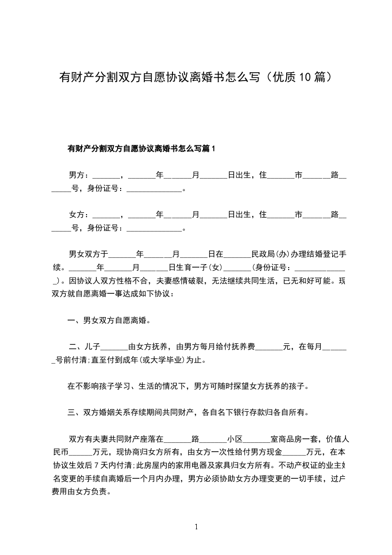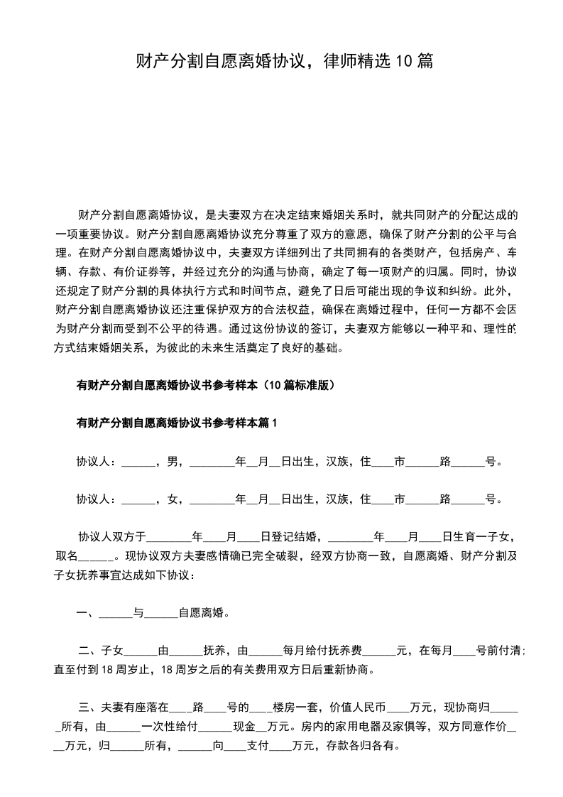 有财产分割双方自愿离婚协议书参考样本篇10