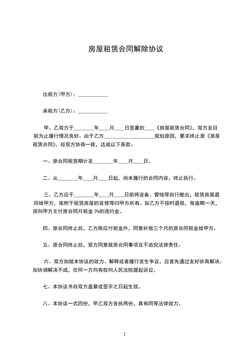 三、乙方应于________年____月____日前将设备、管线等自行搬出,租赁房屋退回给甲方,依附于租赁房屋的装修等归甲方所有。如乙方不按时退租,每逾期一天,须向甲方支付原合同月租金3%的违约金。
