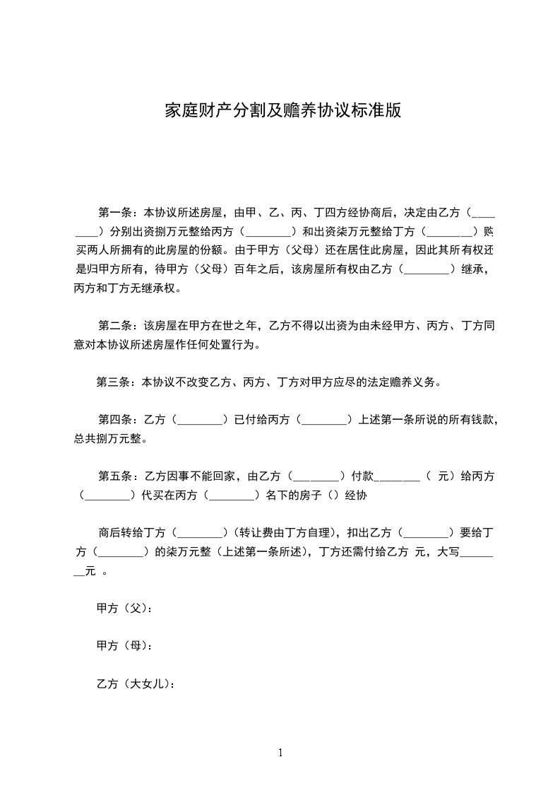 第三条:本协议不改变乙方、丙方、丁方对甲方应尽的法定赡养义务。