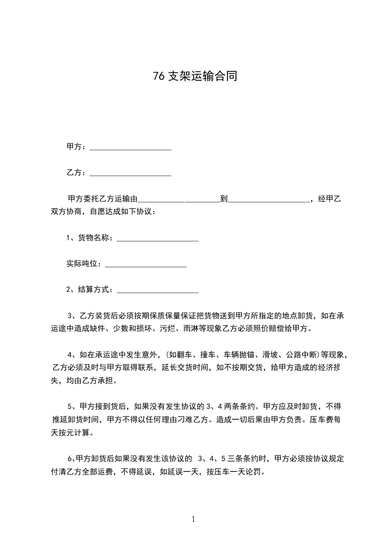 甲方委托乙方运输由_____________________到_____________________,经甲乙双方协商,自愿达成如下协议: