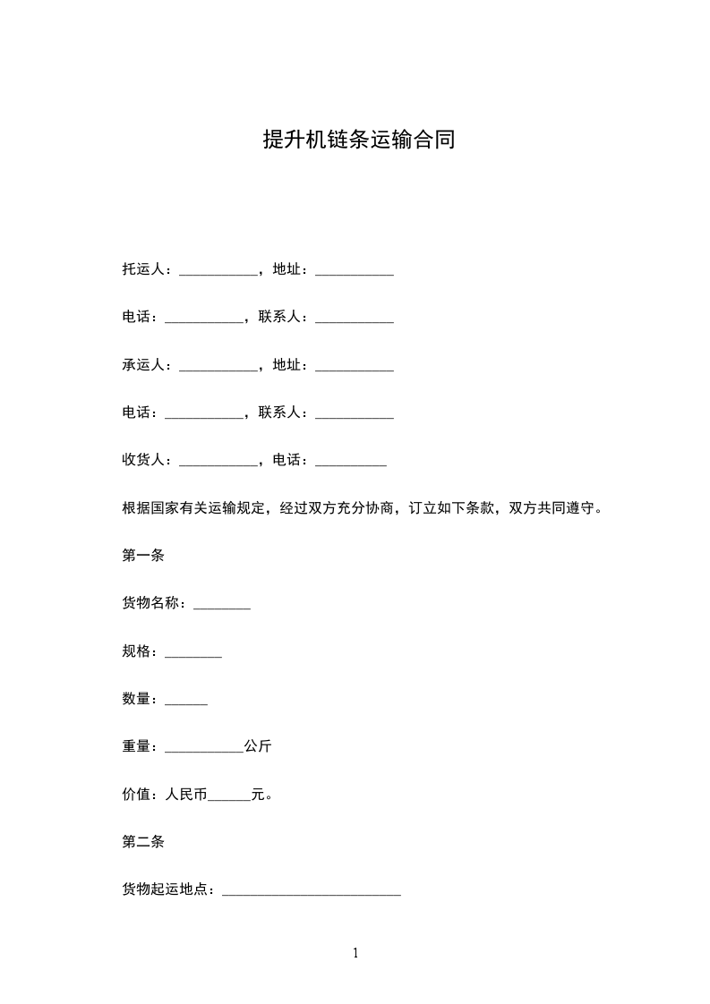 提升机链条运输合同