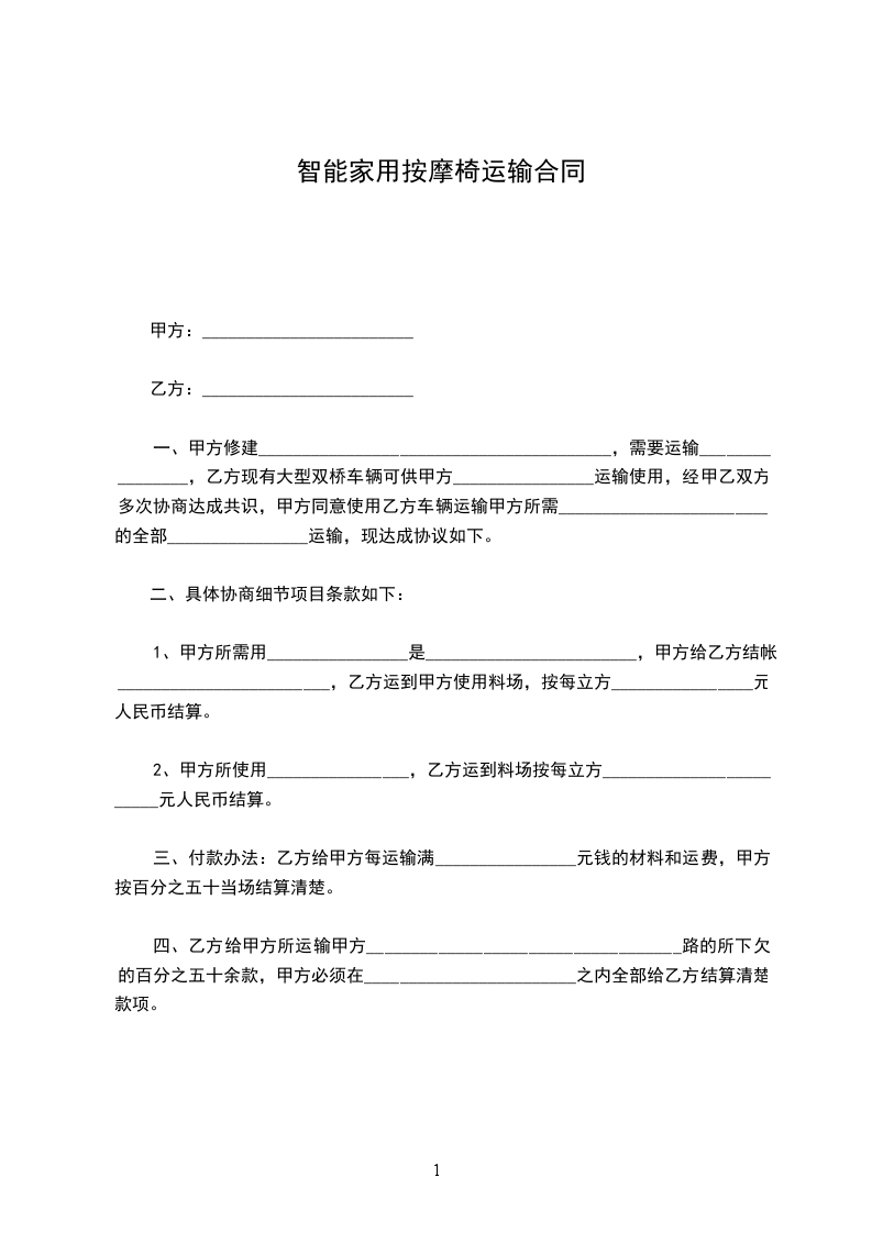 三、付款办法:乙方给甲方每运输满________________元钱的材料和运费,甲方按百分之五十当场结算清楚。